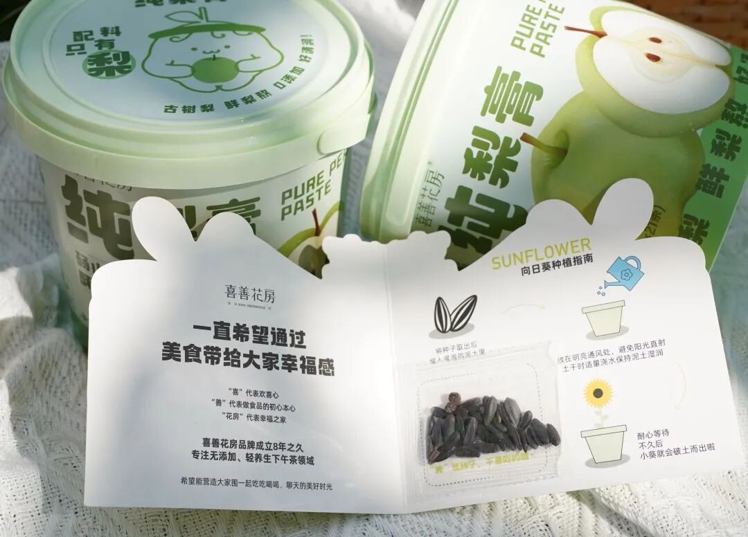 食品级材质的小绿桶,喝完梨膏后不要扔,还能循环利用起来——赠送的向日葵种子卡可以直接种在里面。或者当个收纳桶也好用。