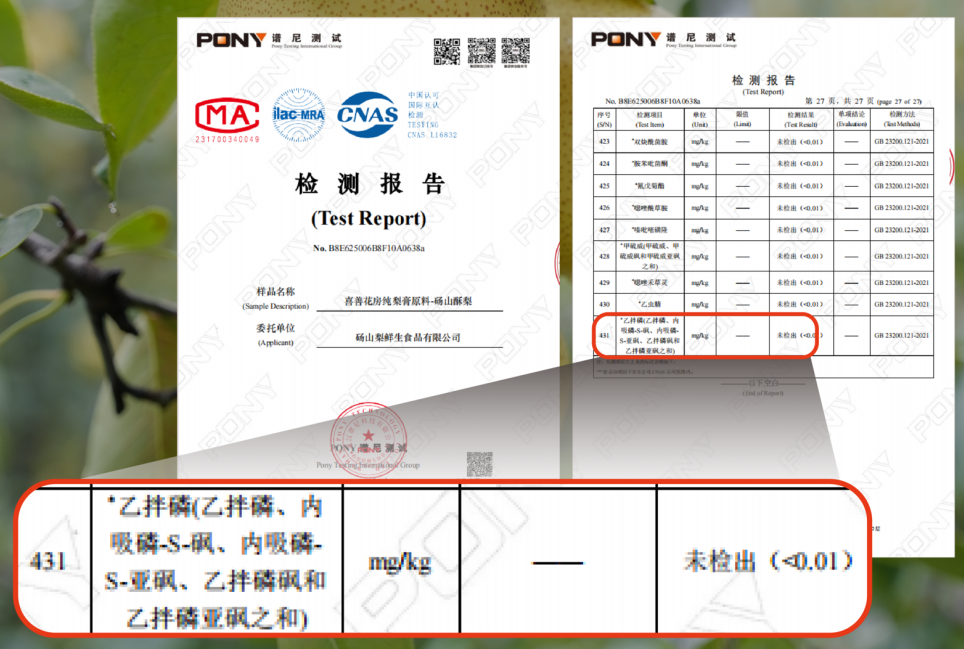 而且每批梨都通过了431项农残检测;