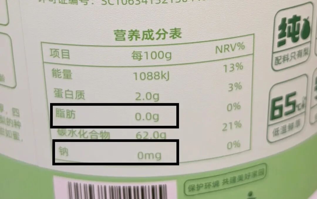 营养成分表也非常漂亮,0钠、0脂肪,对身体健康零负担。
