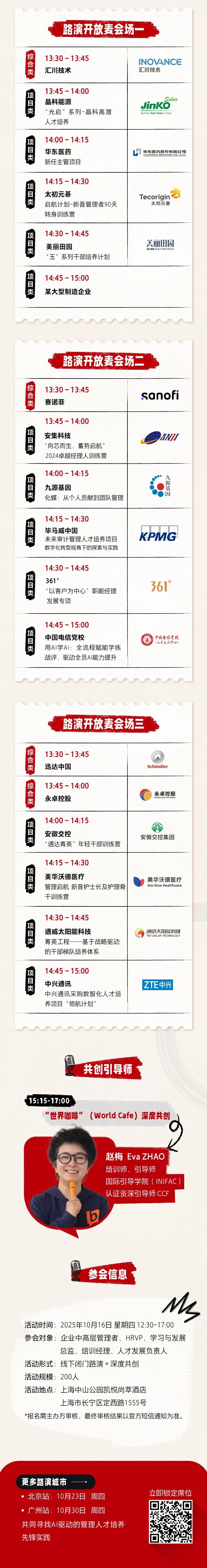 路演开放麦上海站分享环节设有三场高质量平行分会场。席位有限,每位参会者仅可选择一场。请在报名时提前选定,确保最佳参会体验。