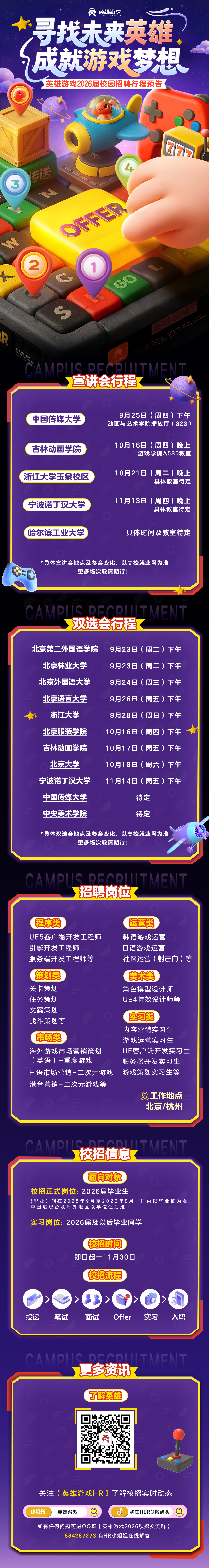 叮!英雄游戏最新校招行程来啦,请速速查收!