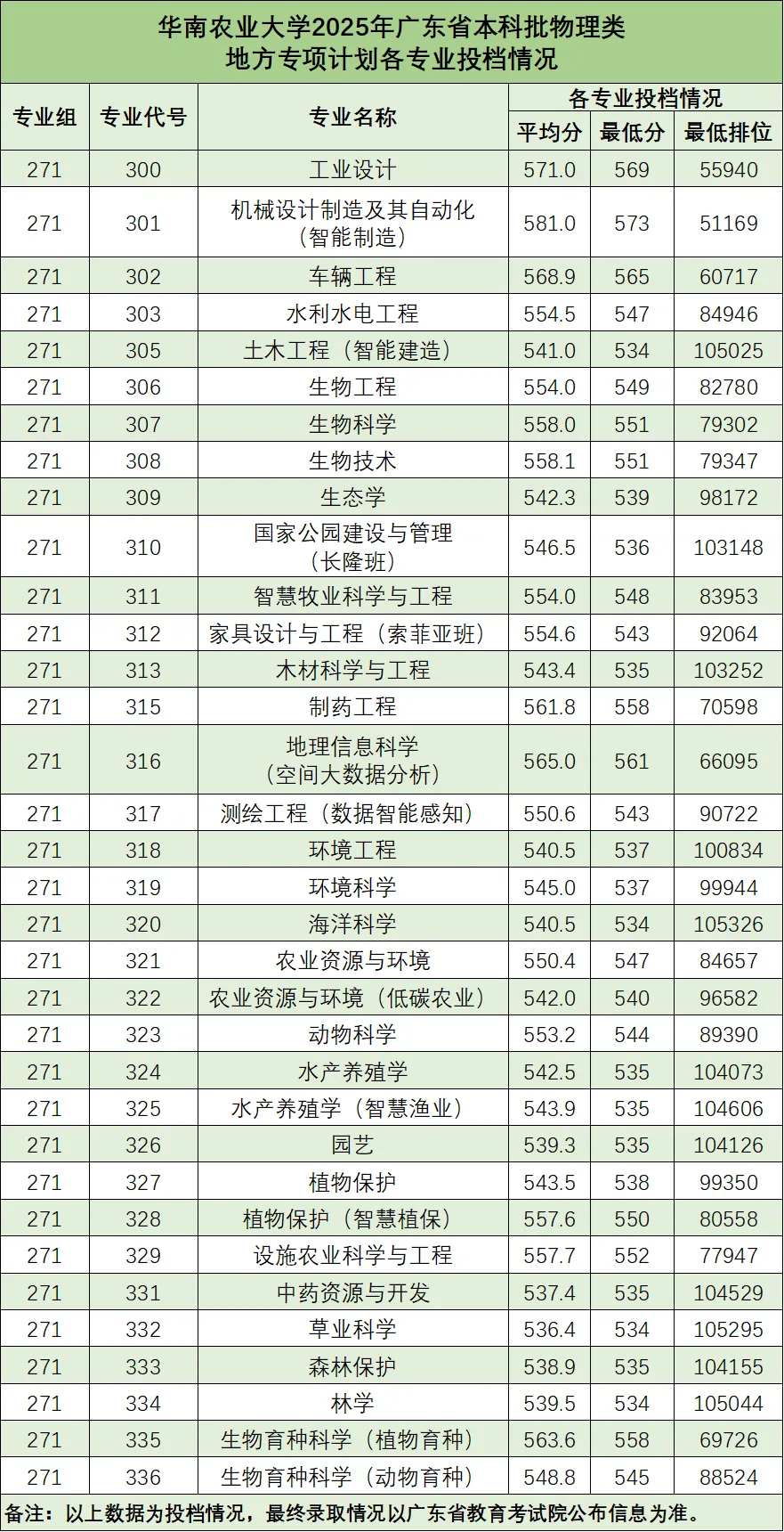 529分可以上“双一流”!华南农业大学2025年各专业录取分数线来了!
