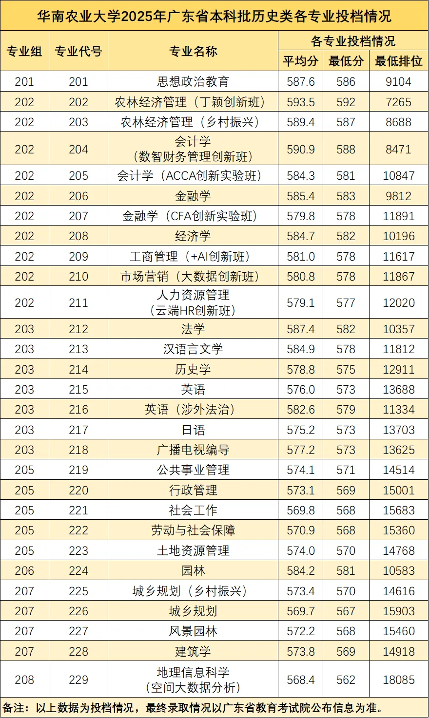 华南农业大学2025年高考分专业分数线最新出炉啦!26届考生建议收藏!