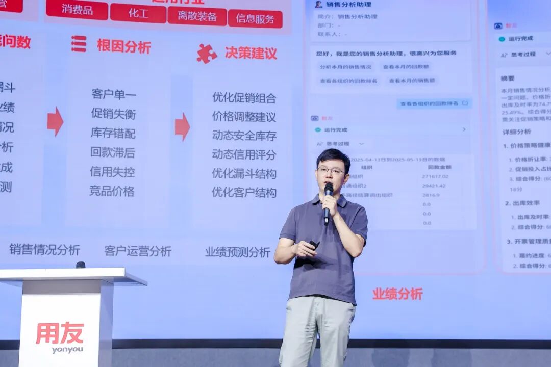 他进一步展望,未来用友将基于对数据的深度理解,沉淀出更多行业大模型,赋能企业从“事后总结”走向“事前预测”,真正实现“基于数据洞察的业务增长”。