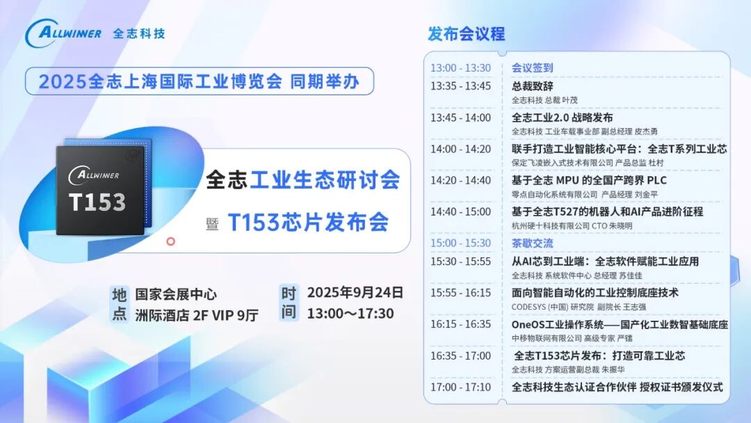 9月24日 全志工业生态研讨会 暨 T153芯片发布会 期待您的到来~