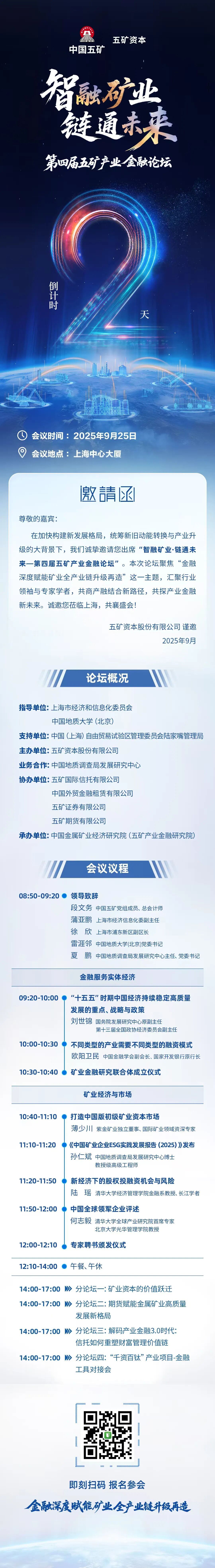 倒计时2天!第四届五矿产业金融论坛即将启幕!