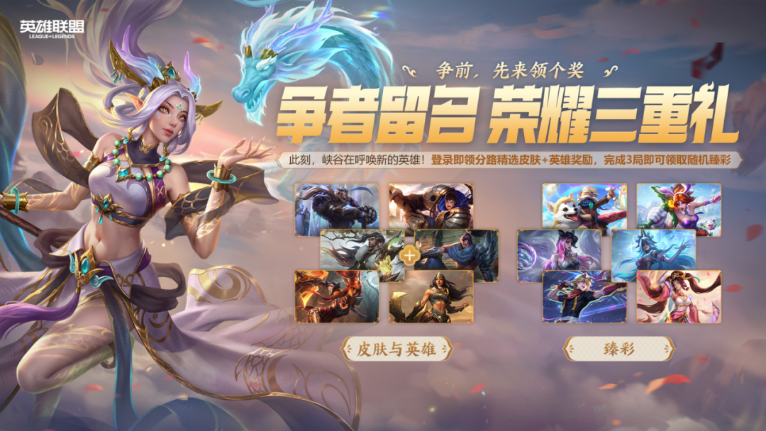 争者留名 荣耀三重礼!免费领皮肤+臻彩+英雄!