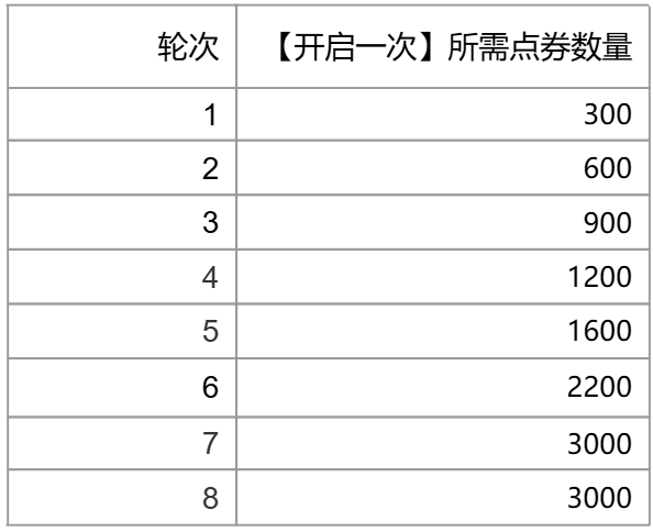 4、同一轮开启所消耗的点券数量不变,不同轮启动消耗的点券会逐轮递增