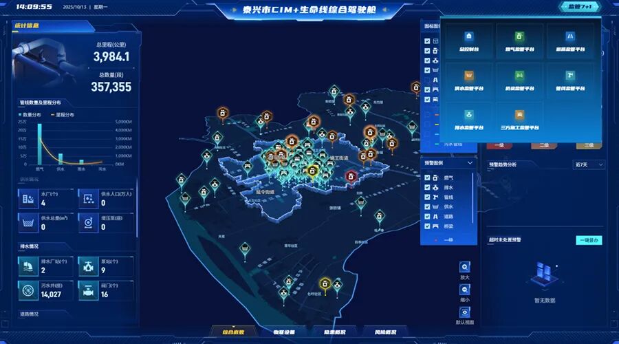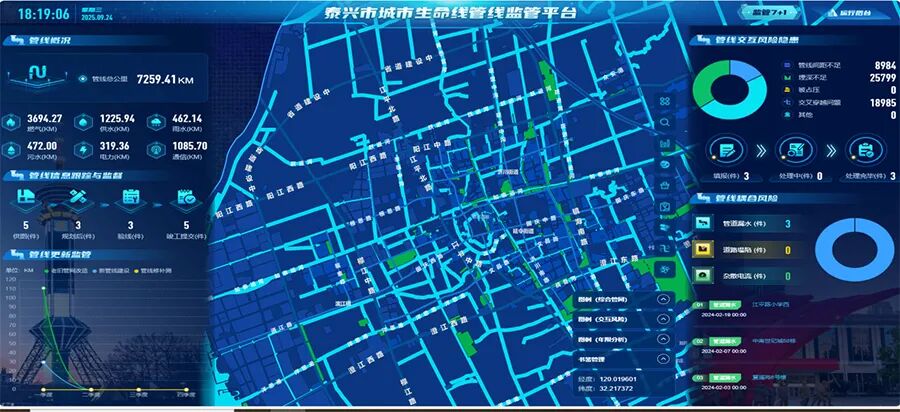 平台落地后,泰兴的城市安全治理成效显著。目前已覆盖3984公里管线、194公里道路、134座桥梁、31.8万用户、1513个小区,以及燃气、供水、排水等多城市应用领域企业,累计处理17万+条安全检测数据,督办500+条风险信息,推动城市安全管理从“被动应对”走向“主动防控”,从“分散管控”到“协同共治”。以燃气老旧管网改造为例,平台投用后,进度实时可查,告别“凭经验估算”时代,而且第三方施工破坏管网的风险降低,平台自动共享施工线索,提醒各权属单位提前介入防护。
