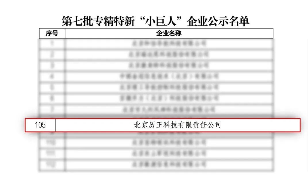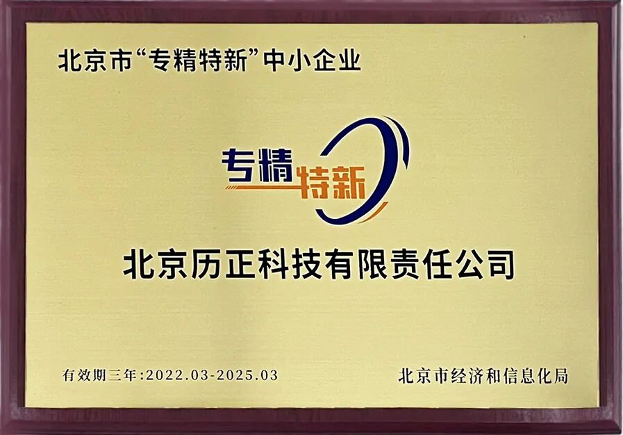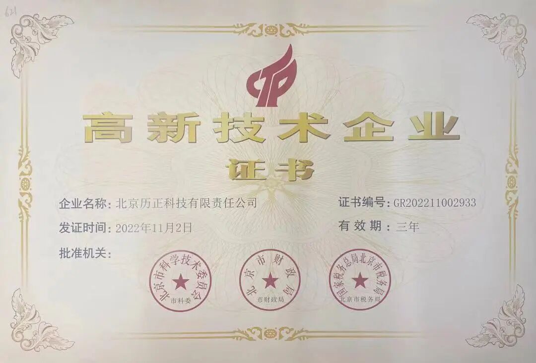 自2018年成立以来,历正科技先后获得国家高新技术企业、北京市瞪羚企业、北京市专精特新企业等荣誉资质。