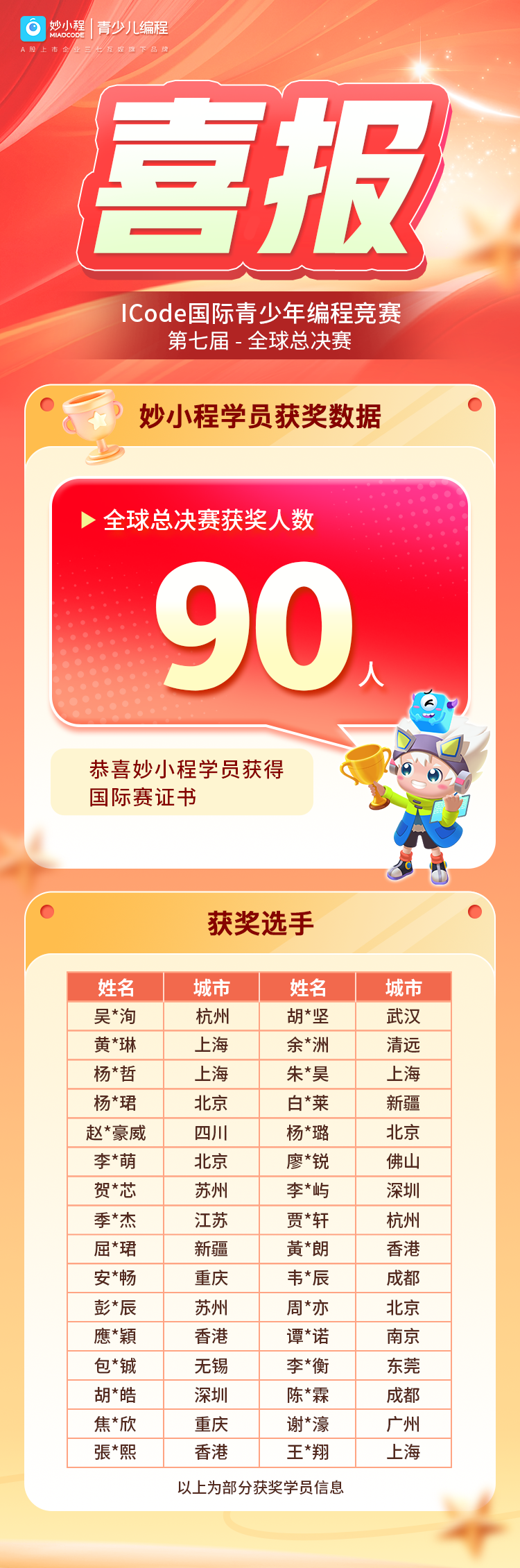 捷报!ICode全球总决赛圆满落幕,90位妙小程学员载誉而归