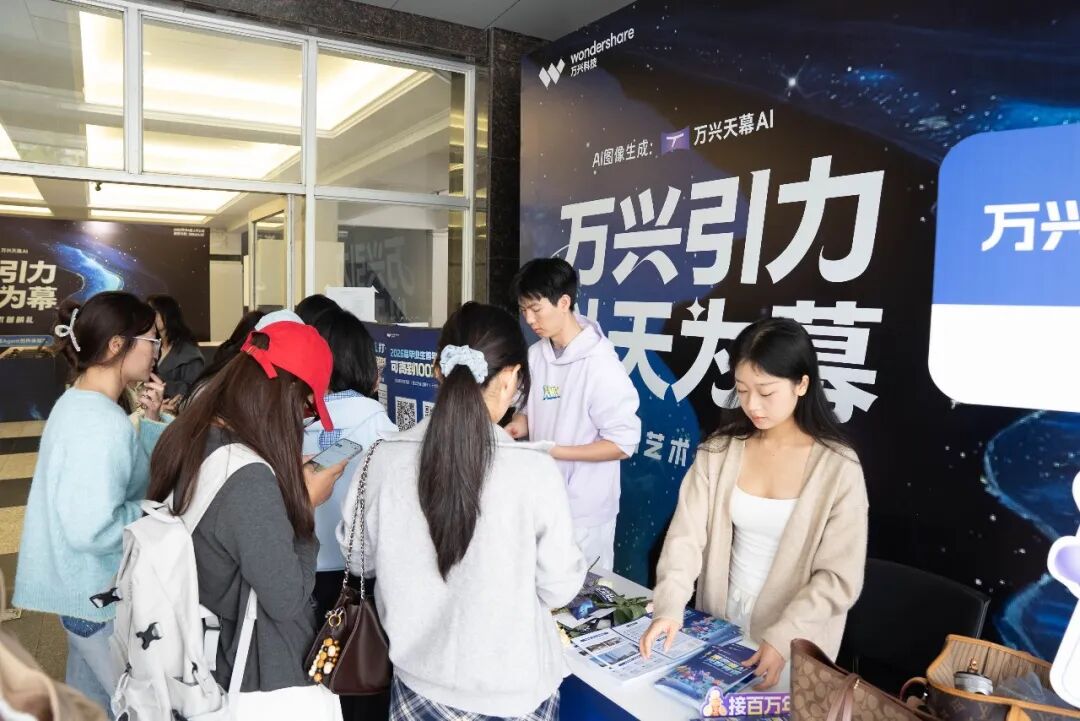 活动现场,“万兴引力,以天为幕:我的AI艺术首映礼”体验区吸引了众多师生驻足体验,万兴天幕AI产品负责人现场演示了产品核心功能,并分享了最新技术成果。面向“AI+艺术”领域,万兴天幕AI在专业级运镜、多层次立体音效生成、首尾帧智能补齐过渡等方面具备显著优势,能够大幅降低AI视频创作门槛,推动AI视频创作迈向更真实、更可控、更稳定的新阶段。
