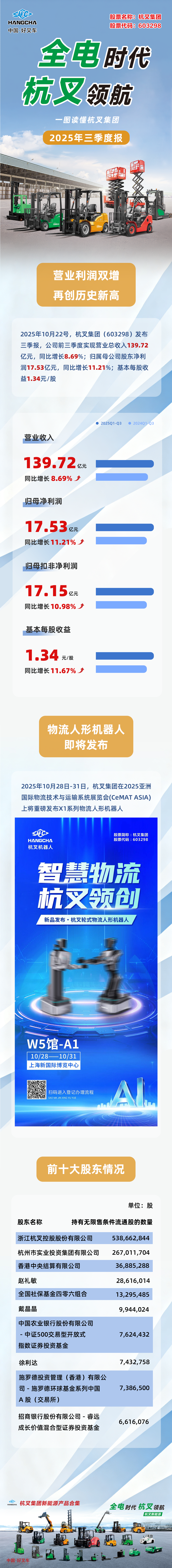 杭叉集团|一图读懂杭叉集团2025年三季度报!