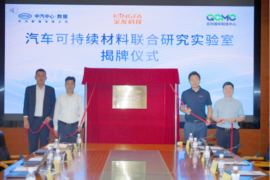 会上,金发科技、吉利汽车、中汽数据三方正式成立“汽车可持续材料联合研究实验室”,该实验室是三方依托现有技术资源开展可持续材料技术研发、产业应用及人才培养,推动技术成果快速转化,突破材料绿色发展瓶颈的新探索路径。金发科技总经理吴敌、中汽数据总经理冯屹、浙江吉利汽车有限公司ESG总监俞绍华、金发科技车用行业总经理刘彦伟共同为汽车可持续材料联合研究实验室揭牌。中汽数据对实验室的工作规划、目标定位等做了具体分享,该联合研究实验室的成立,标志着汽车行业在可持续材料领域的技术协同创新迈入新的实质落地阶段。
