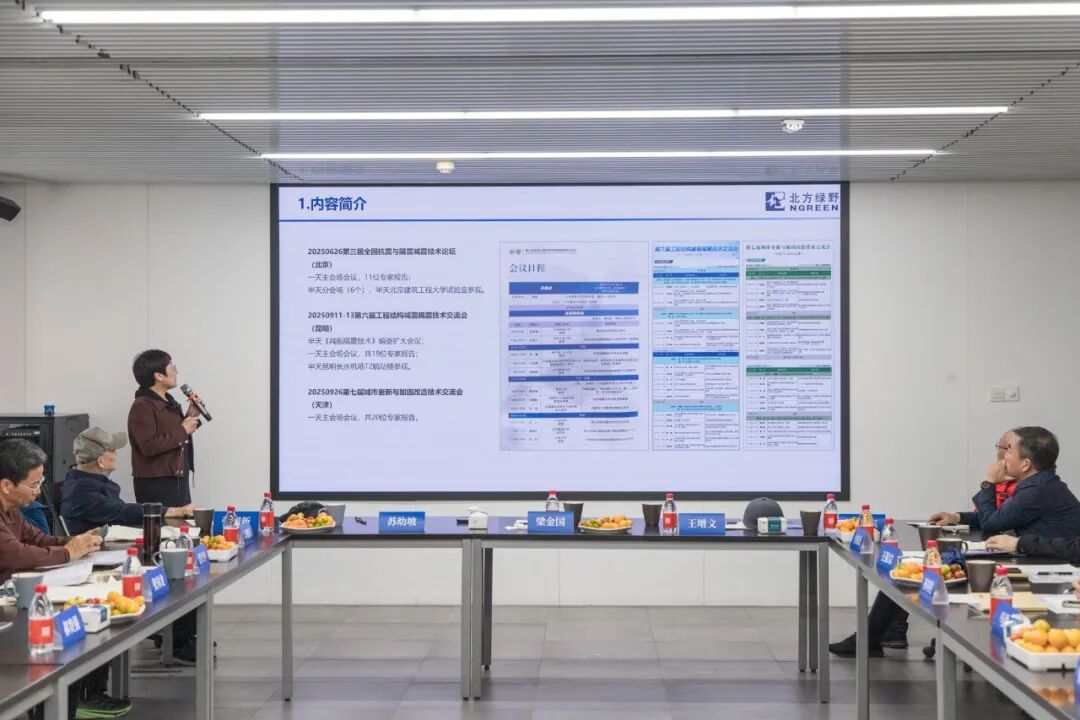 2025年10月16日下午,河北省工程勘察设计咨询协会减隔震技术工作委员会工作会议在河北北方绿野建筑设计有限公司(以下简称 “北方绿野”)顺利召开。河北省工程勘察设计咨询协会会长梁金国、常务副会长兼秘书长王增文、事业发展部部长付相龙等领导出席会议。会议由减隔震技术委员会副主任兼秘书长张利新主持。