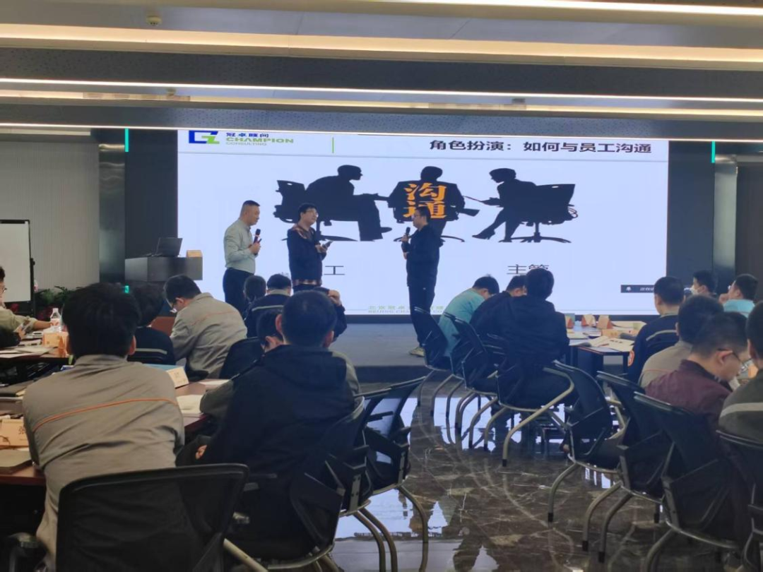 下午课程重点围绕“现场日常管理”和“工作教导与人际关系”两大单元展开。刘老师明确了现场作为企业增值活动核心场所的定位,并详细解读了现场七大管理维度的核心任务。在工作教导与人际关系模块,刘老师强调了四阶段工作教导法的重要性,并针对新生代员工管理等现实挑战设置了角色扮演环节,让学员在实战演练中提升沟通影响力与人际问题处理能力。
