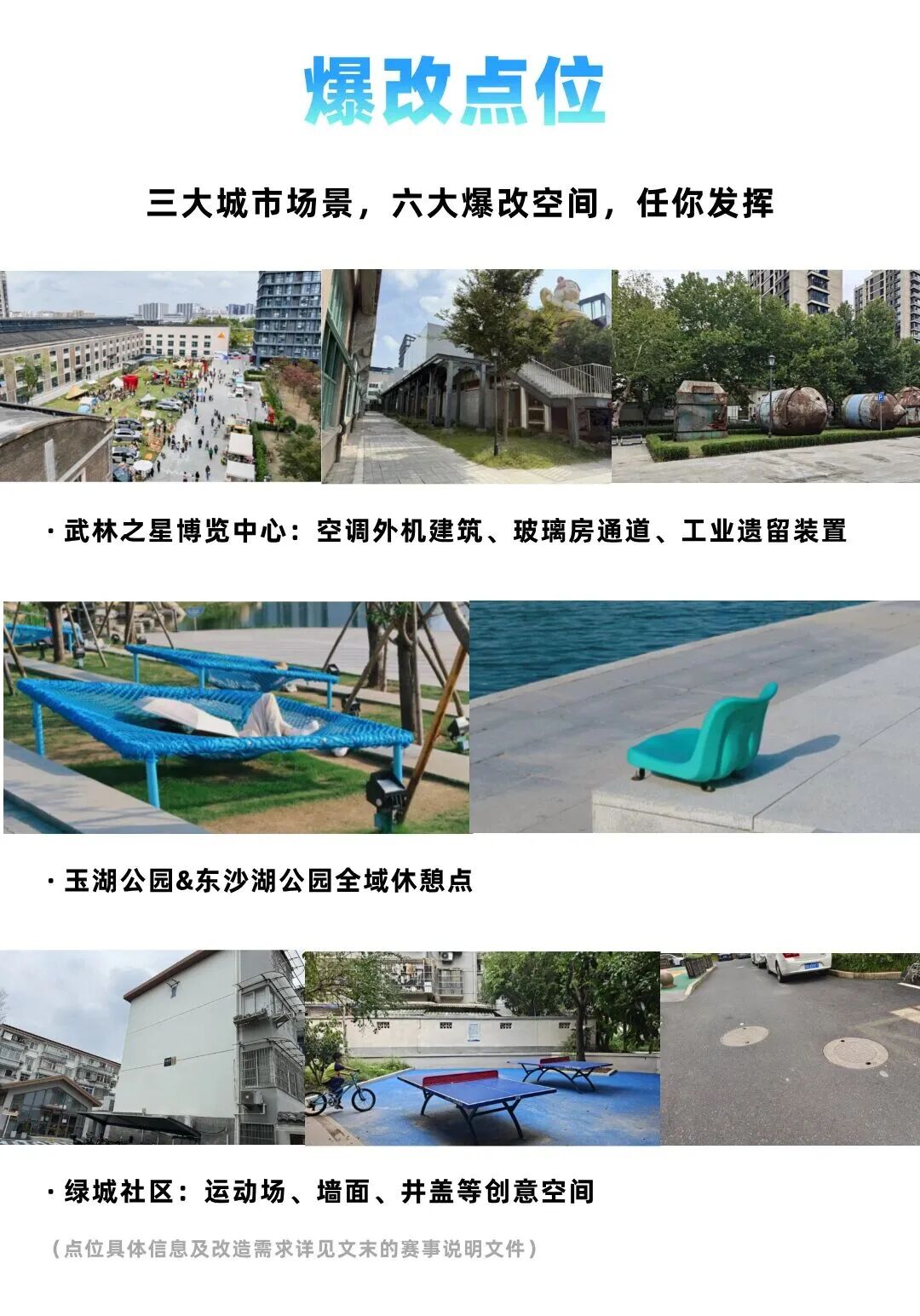 我们希望与您携手,超越单一项目的局限,共同探索空间活化后的无限可能:无论是举办一场社区艺术节、打造一个快闪咖啡据点,还是发起一次街区故事收集计划……让每一个爆改点位,都成为可持续、有机生长的城市文化新节点。