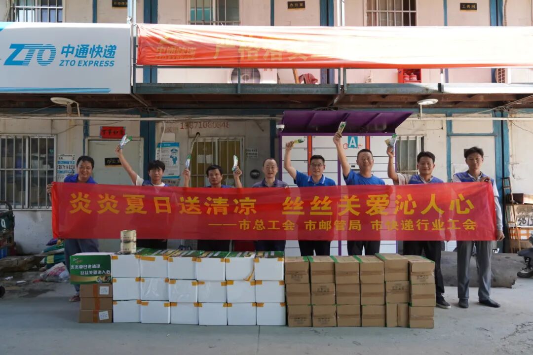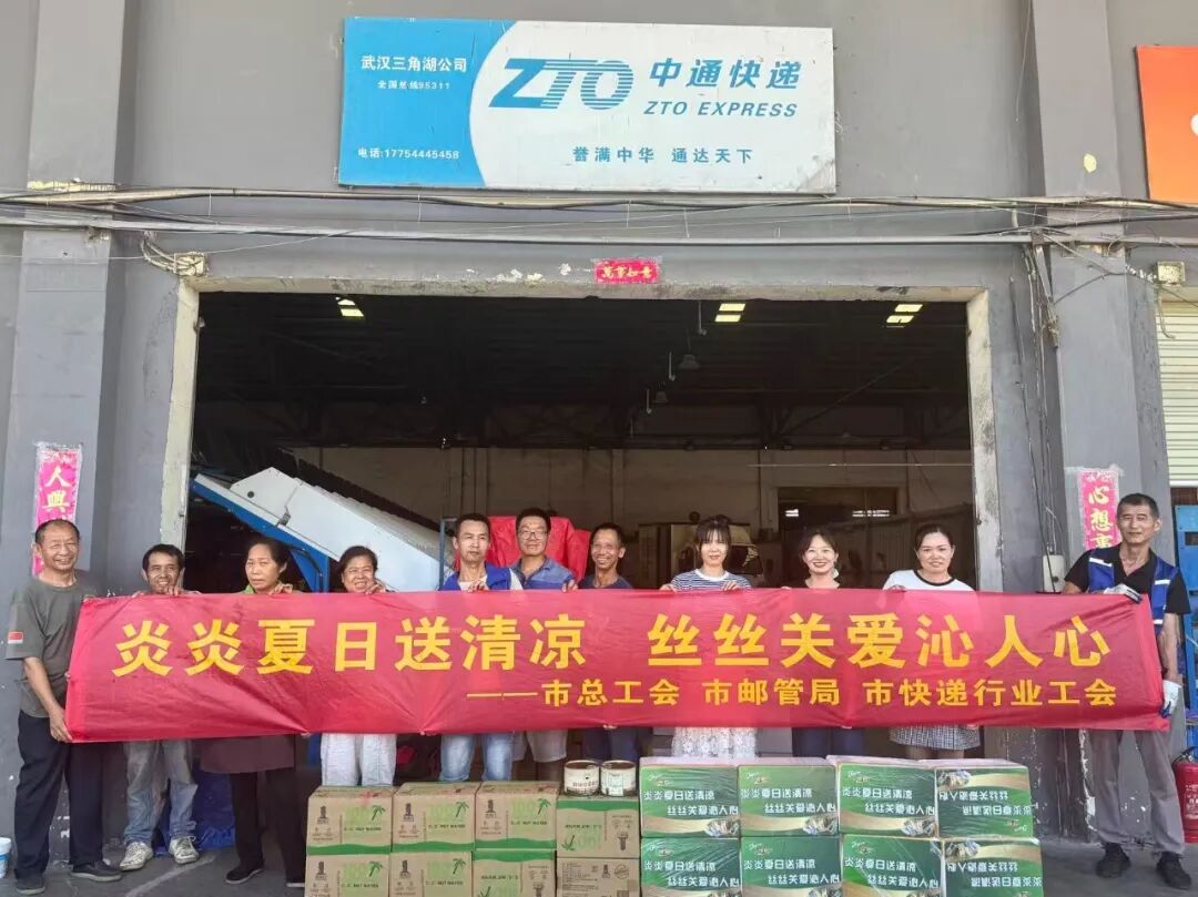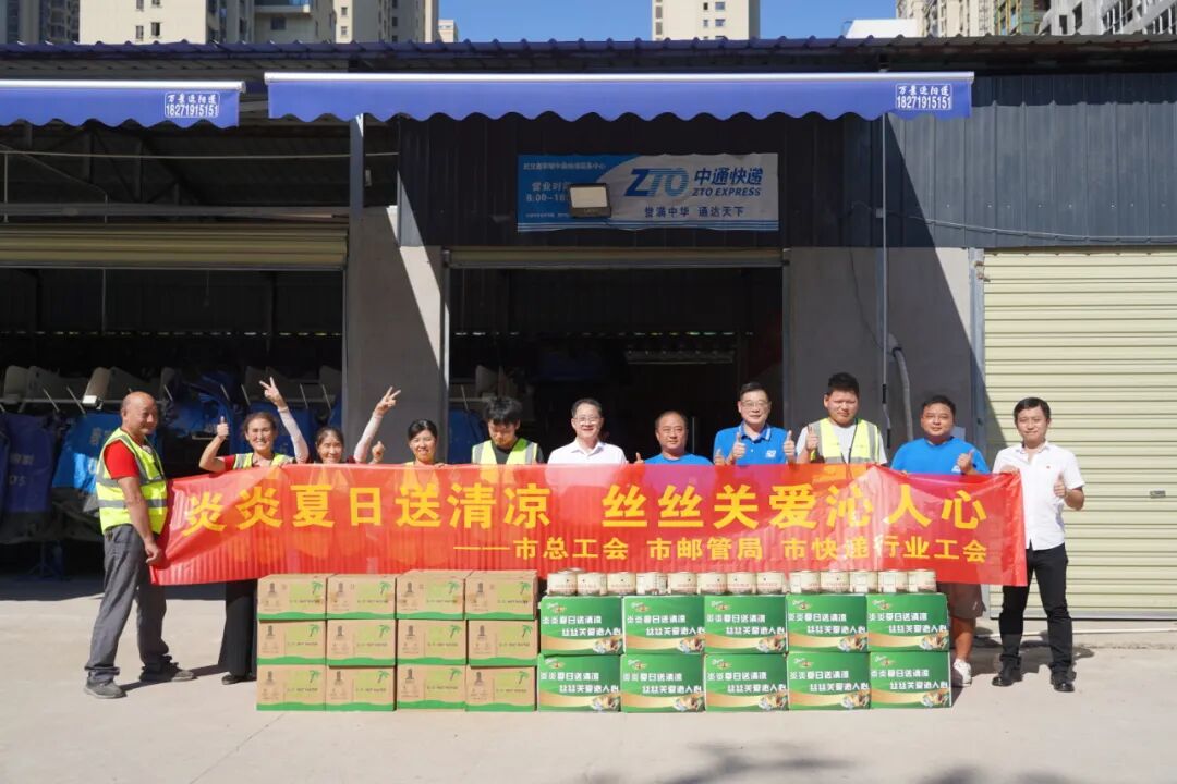 与此同时,联合慰问组也先后前往中通武汉欢乐谷网点和中通武汉三角湖网点,为他们带去了夏日的慰问与福利。