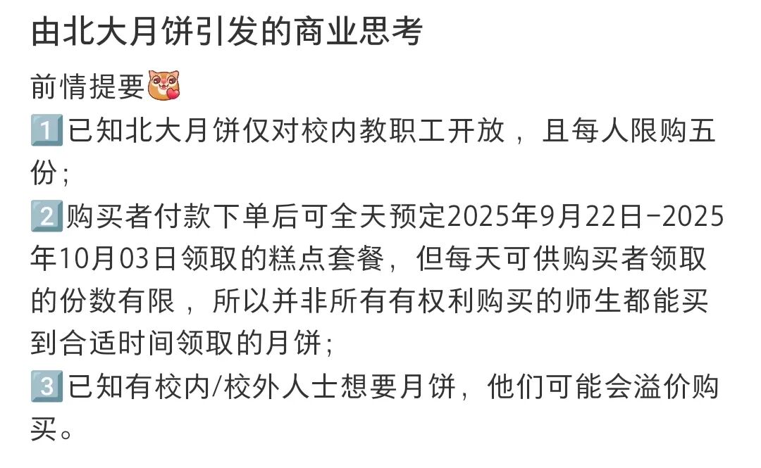 看见北大月饼仅对校内人员开放购买并限购限量,经济方向的小伙伴们又不由自主开始动脑了~