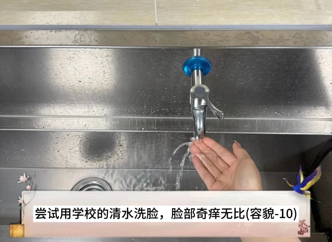 尝试用学校的清水洗脸,脸部奇痒无比。