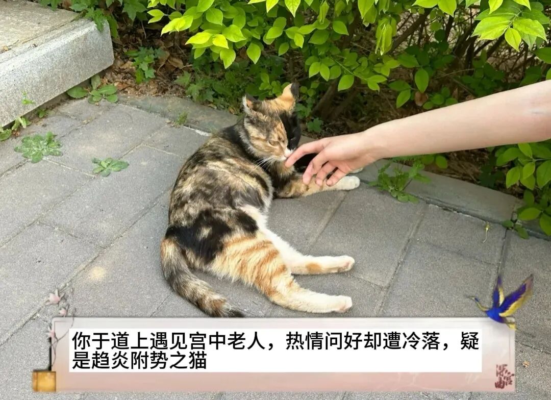 你于道上遇见宫中老人,热情问好却遭冷落,疑是趋炎附势之猫。