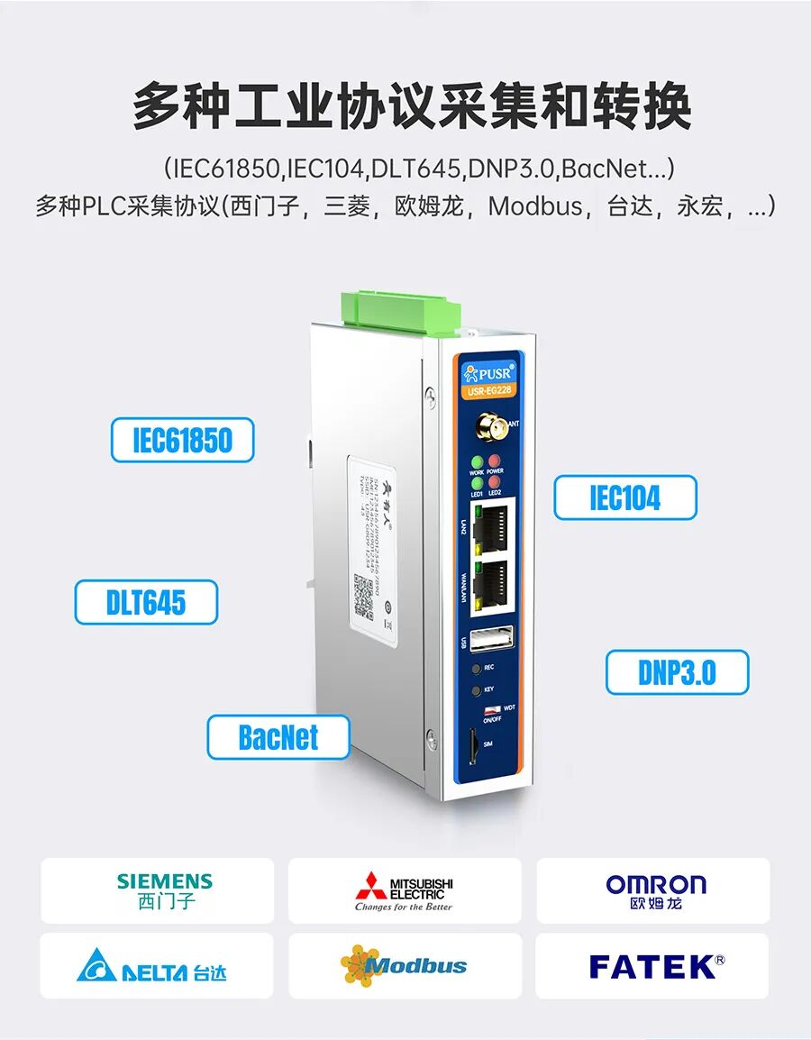 丰富协议兼容:支持Modbus、西门子、三菱、欧姆龙等主流PLC及多种工业协议,轻松接入不同品牌设备,打破数据孤岛。