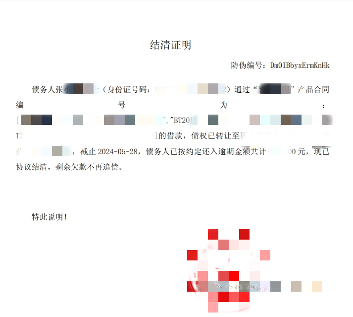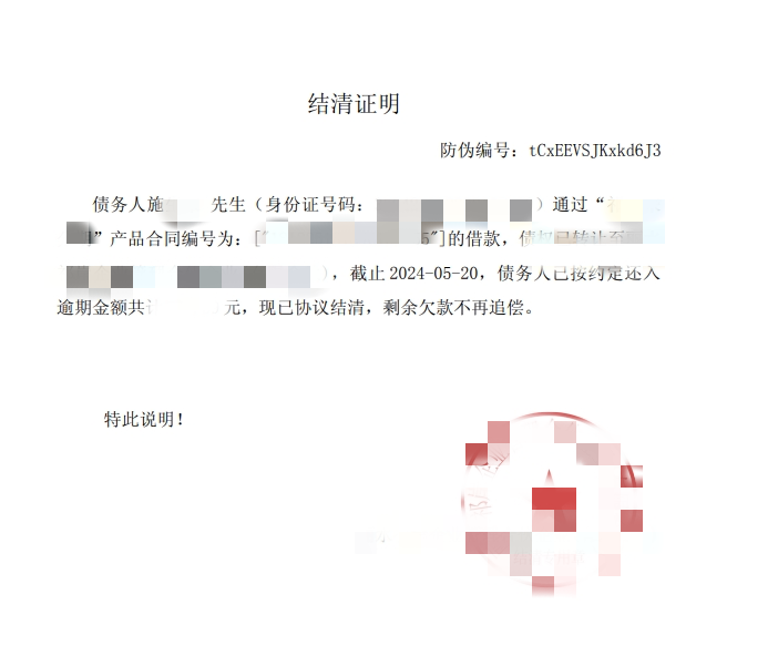 “感谢你们的帮助,如果没有你们的帮助和减免,我不可能这么快还完这些欠款。”张女士在取得部分债务结清证明时表示,虽然还有一些共债未完全偿还,但她表示后续一定会继续努力工作赚钱,争取早点把钱全部还完。我们也衷心祝福她早日能够走出困境,迎接更加美好的人生。