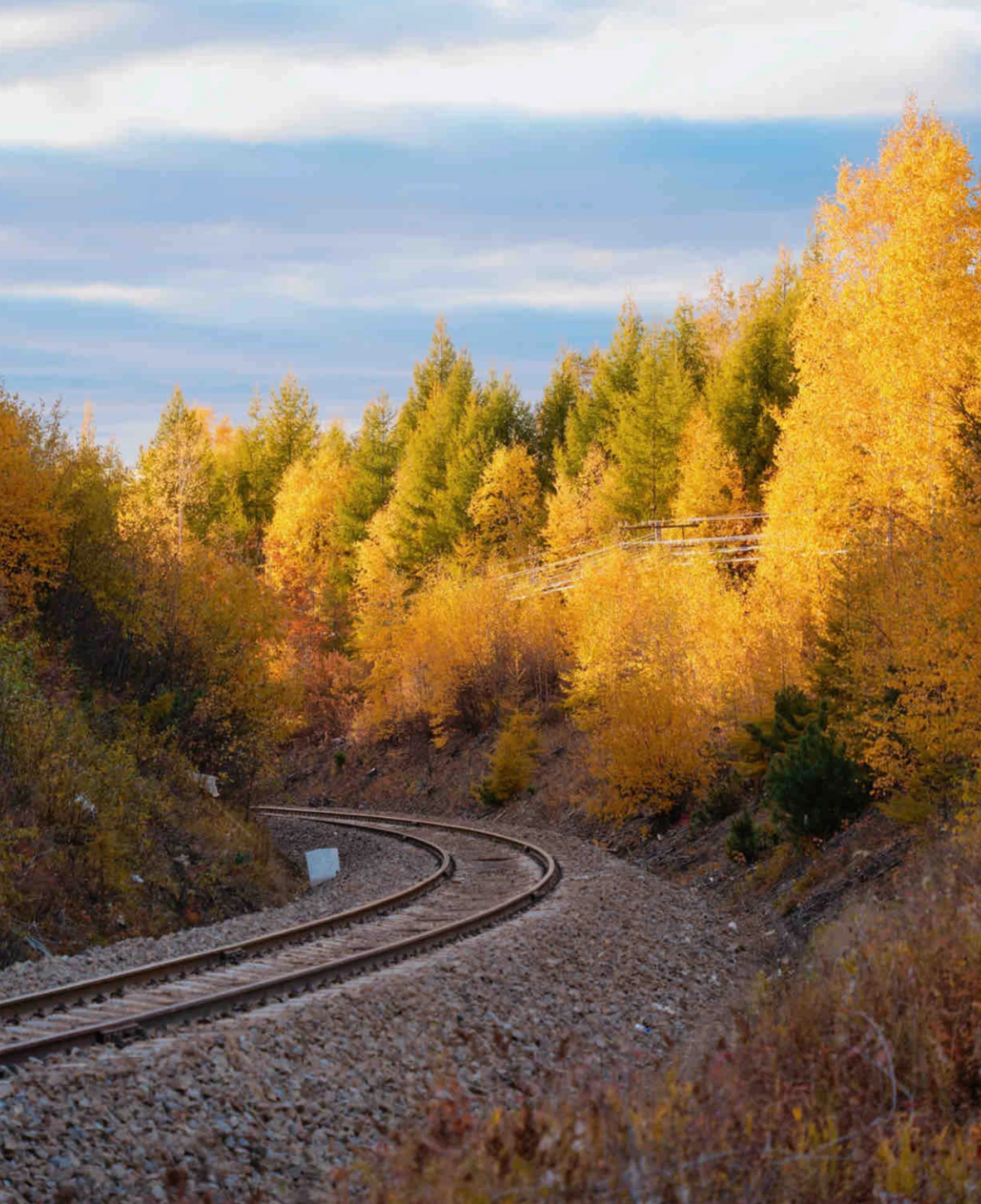 根白的白桦林,降下一半的落日,铁道与公路的交集。秋天满得快要溢出来了。