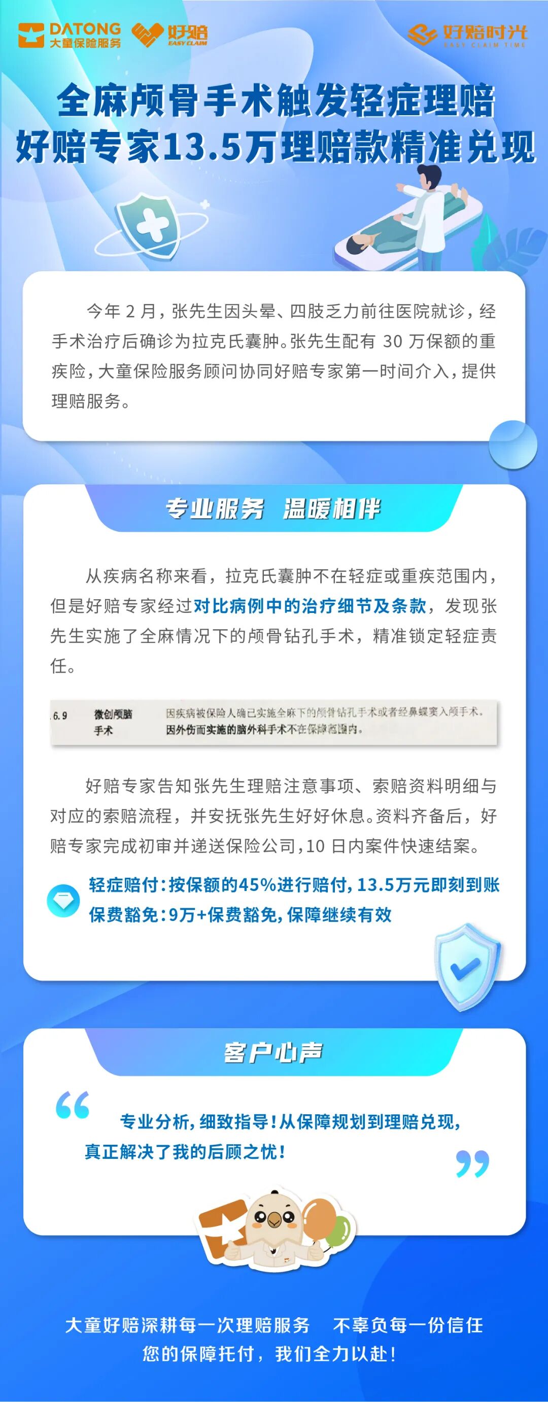 术后理赔愁,好赔专家靠手术细节,锁定赔款13.5万