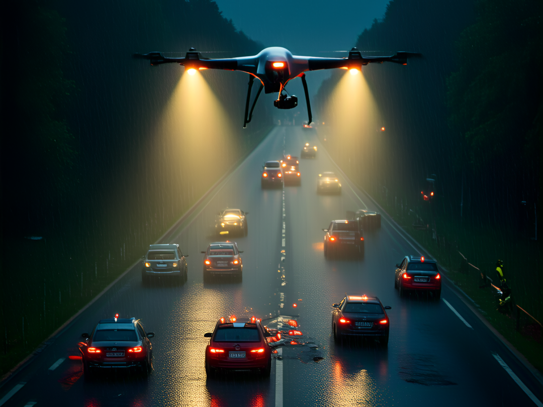 应急响应与夜间作业:无人机配备红外热成像相机、探照灯和喊话器等负载设备,在暴雨、夜间等特殊时段也能迅速响应。为应急抢险提供宝贵时间,确保高速公路的安全畅通。