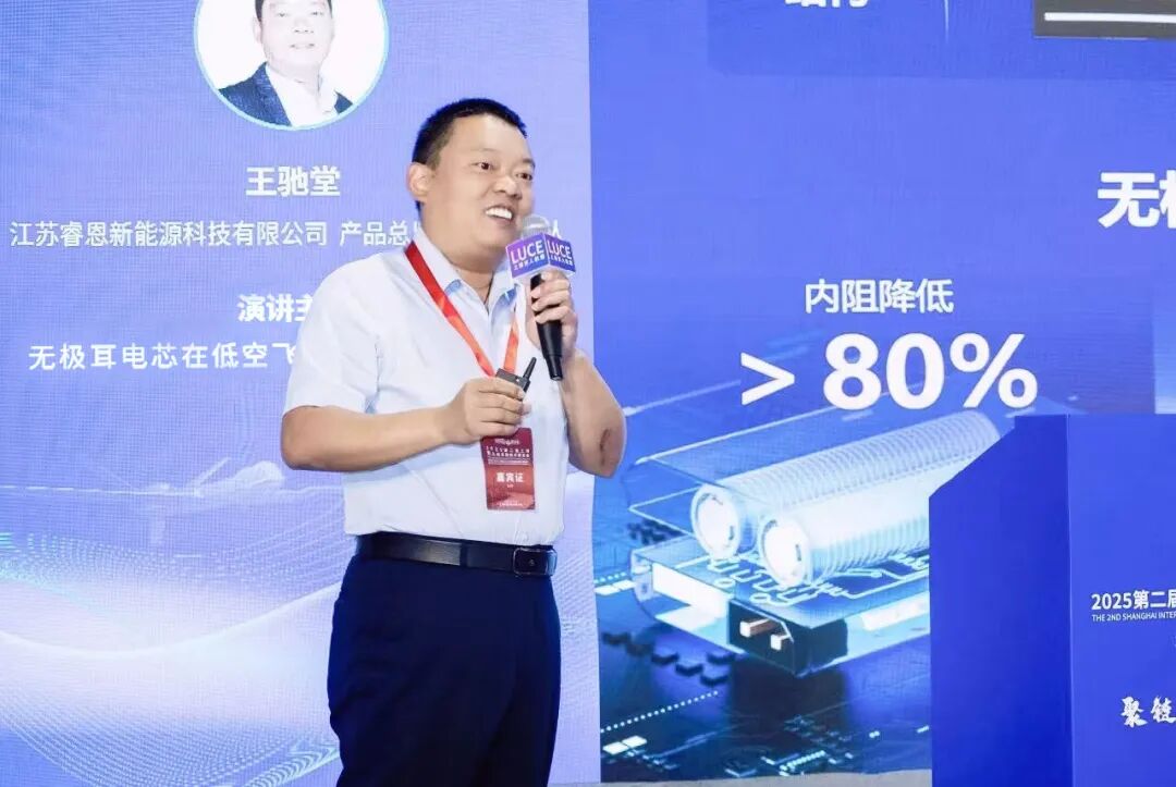2025年10月15日,上海跨国采购会展中心,第二届上海国际低空经济产业大会暨无人机系统技术展览会隆重举行。江苏睿恩新能源科技有限公司创始合伙人&产品总监王驰堂先生受邀出席,并发表题为《无极耳电芯在低空飞行器领域的应用简析》的主题演讲。
