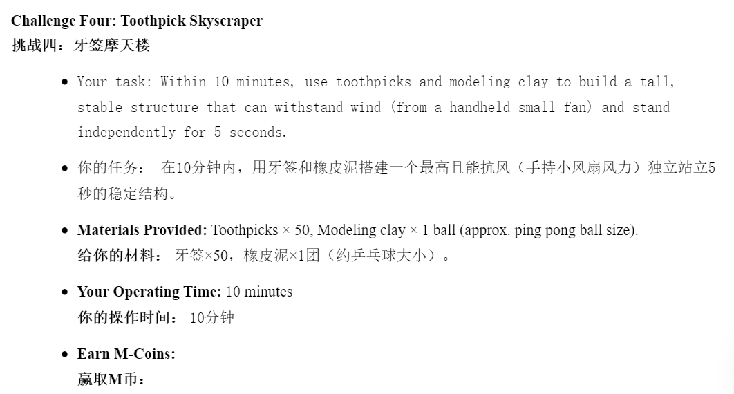 为高度模拟现实世界的资源约束,大赛引入了 “Molecule币”。学生若想获取更高级的材料或争取宝贵的专家指导时间,就必须通过参与“每日即时挑战”和在“中期评审”中表现出色来赚取额外的M币。在这个过程中,如何精打细算,将每一份资源都用在刀刃上,成为每个团队必须面对的现实课题,引导他们深入思考资源分配的最优解。