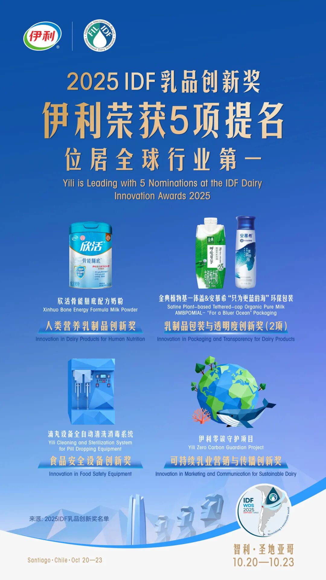 素有全球乳业“奥斯卡”之称的“IDF乳品创新奖”也将在峰会期间揭晓。在目前已经公布的提名名单中,伊利集团获得五项奖项提名,成为全球获提名数量最多的乳制品企业。其中,伊利“欣活骨能膳底配方奶粉”获得“人类营养乳制品创新奖”提名,伊利“滴丸设备全自动清洗消毒系统”获得“食品安全设备创新奖”提名,“金典植物基一体盖有机纯牛奶”和“安慕希‘只为更蓝的海’限定环保包装”分别获得“乳制品包装与透明度创新奖”提名,伊利“零碳守护项目”获得“可持续乳业营销与传播创新”提名。