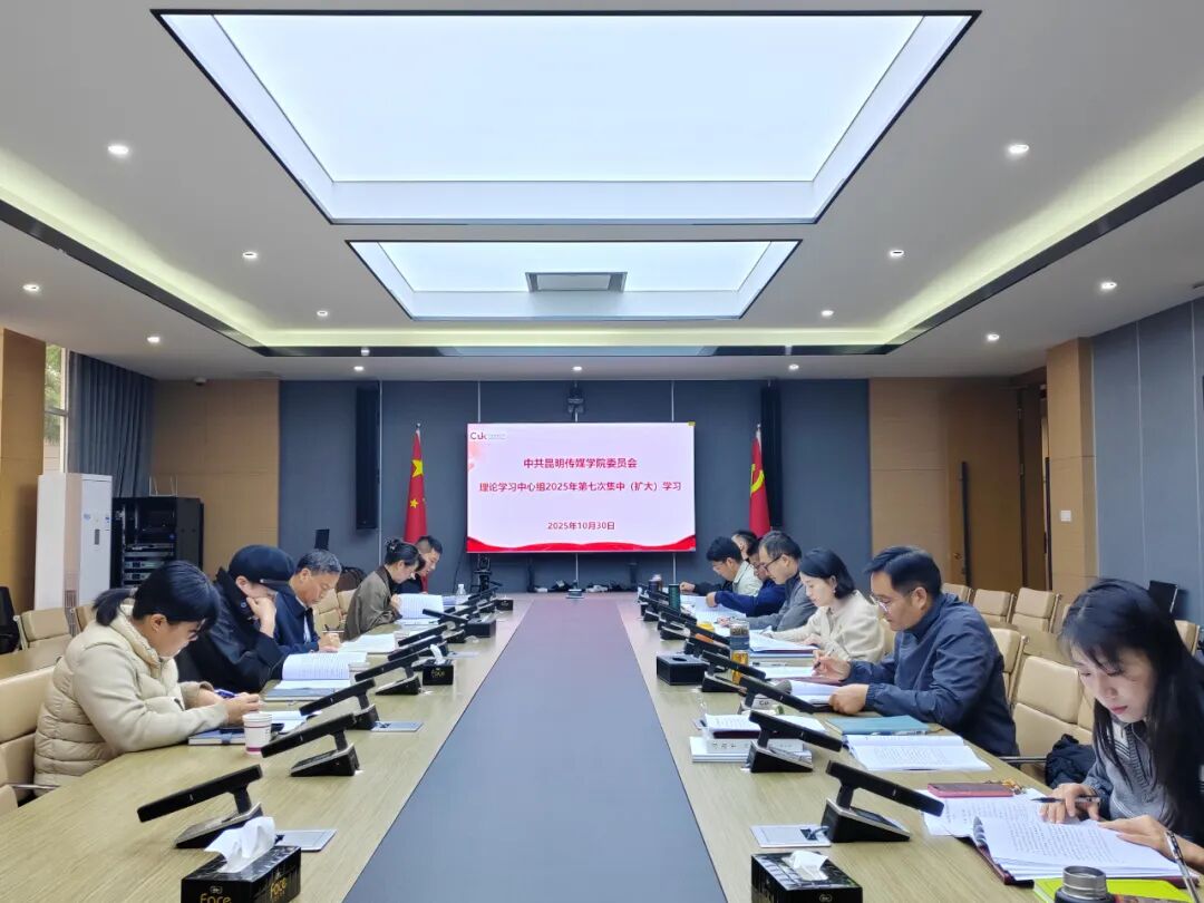 2025年10月30日上午,昆明传媒学院党委理论学习中心组召开2025年第7次集体学习(扩大)会,专题学习党的二十届四中全会精神。学校党政领导班子、党群部门负责人参加会议,二级党组织负责人和二级学院负责人列席会议。会议由党委书记朱发刚主持。