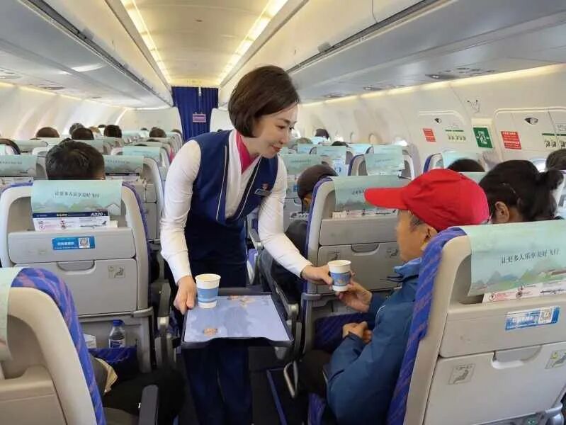 南航北方分公司在沈阳-三亚往返航线上,推出“老幼无忧”系列服务,为老年旅客提供专属服务保障,使银发旅客漫长的航程变得更加舒适安心。