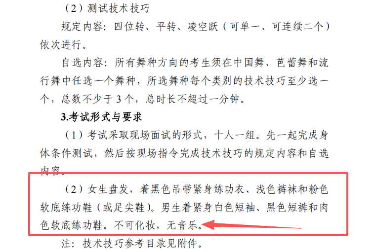 特别提醒:音乐、舞蹈、表导演等专业通常对服装有具体要求,且明确规定不可化妆。往年曾有考生因未注意考纲要求,带妆考试而无法进考场,被考官要求现场擦妆,26届考生务必重视和规避!
