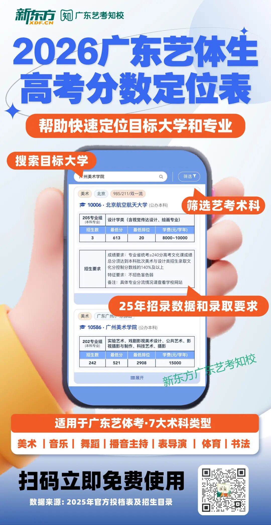 免费使用《26届广东艺体生分数定位表》↓↓↓