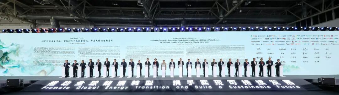 本届风能大会以“推动全球能源转型,携手实现可持续发展”为主题,邀请了多国家驻华代表和国内外专家学者共商风电发展方向,来自世界经济论坛(WEF)、全球风能理事会(GWEC)等机构专家带来前沿洞察;同时,国内外风电龙头企业领袖齐聚一堂,分享战略布局与创新实践。在大会开幕式上,华锐风电集团副总裁施永吉与行业代表共同签署了《风能北京宣言2.0》。