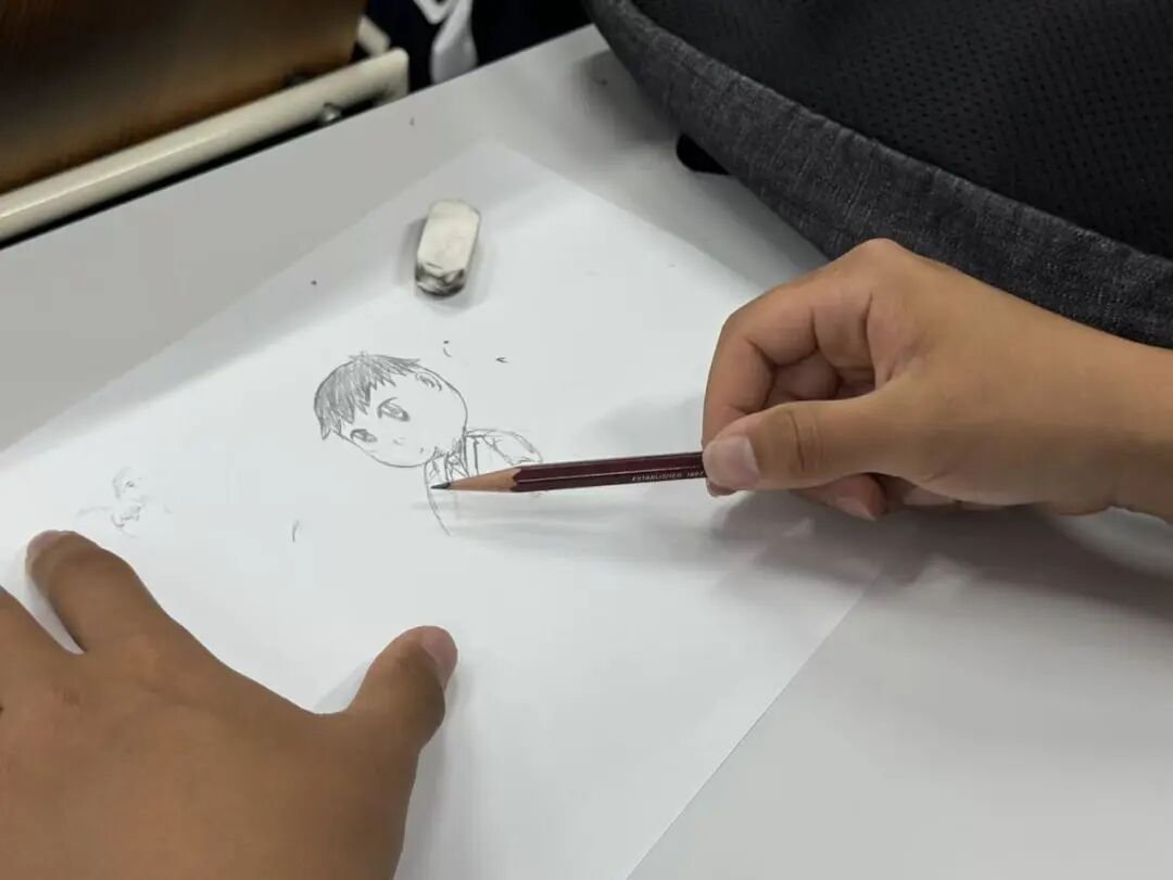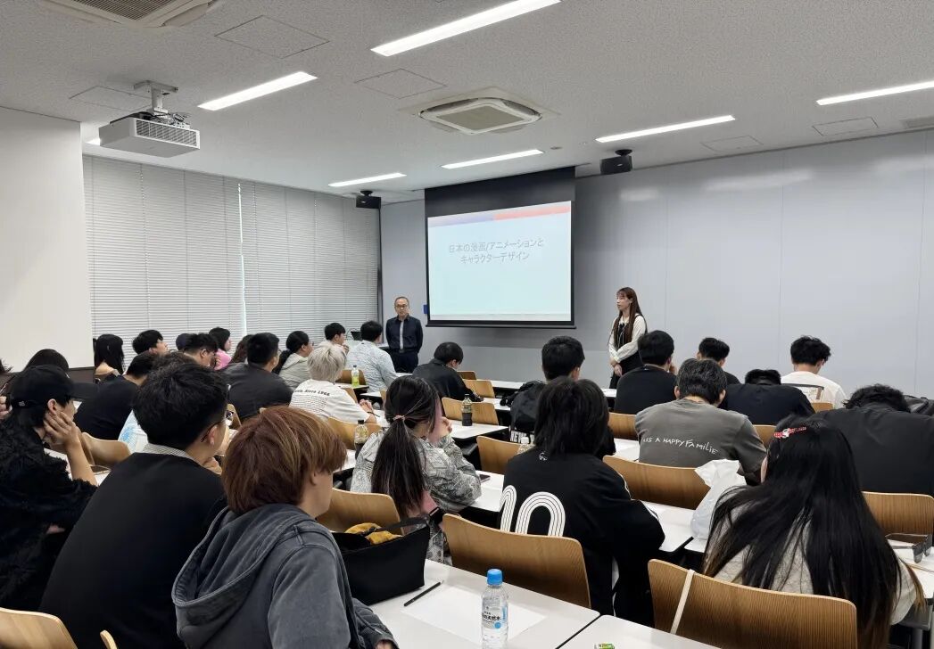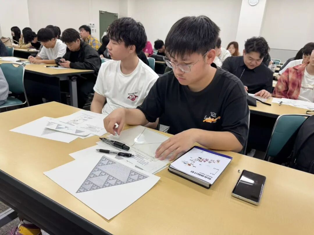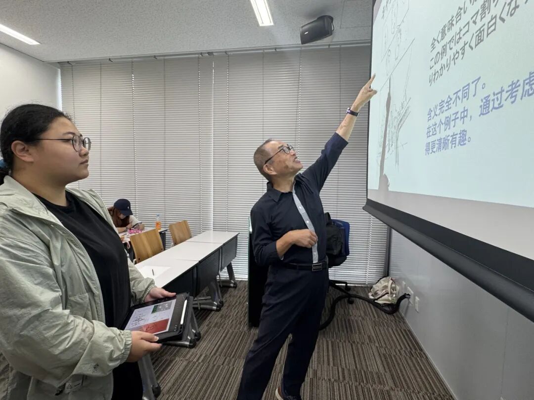 在追求严谨科学精神的同时,课程也安排了充满感性与创意的艺术之旅。在大阪综合设计学院,跨界艺术家小山贤一教授为学员们带来了一场别开生面的动漫大师课。小山教授带领大家深入日本动漫的神奇世界,亲授角色绘制技巧。在充满灵感与画笔魔法的课堂上,学员们亲手绘制出各具特色的动漫角色,将想象落于笔端。