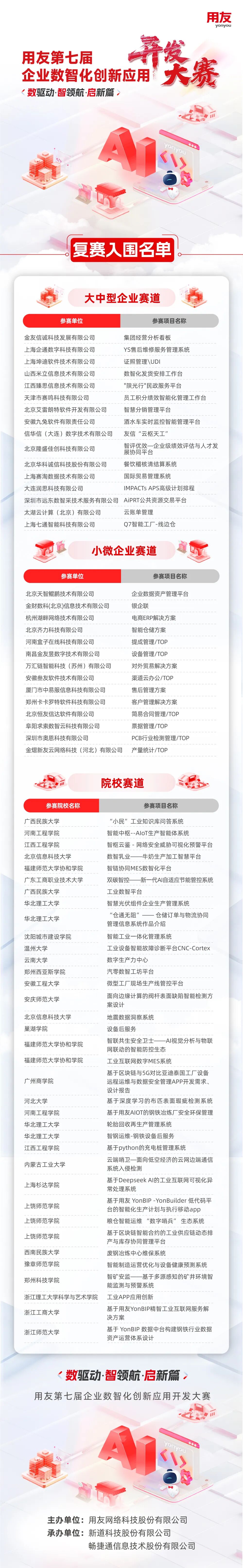用友第七届企业数智化创新应用开发大赛复赛结果公示!