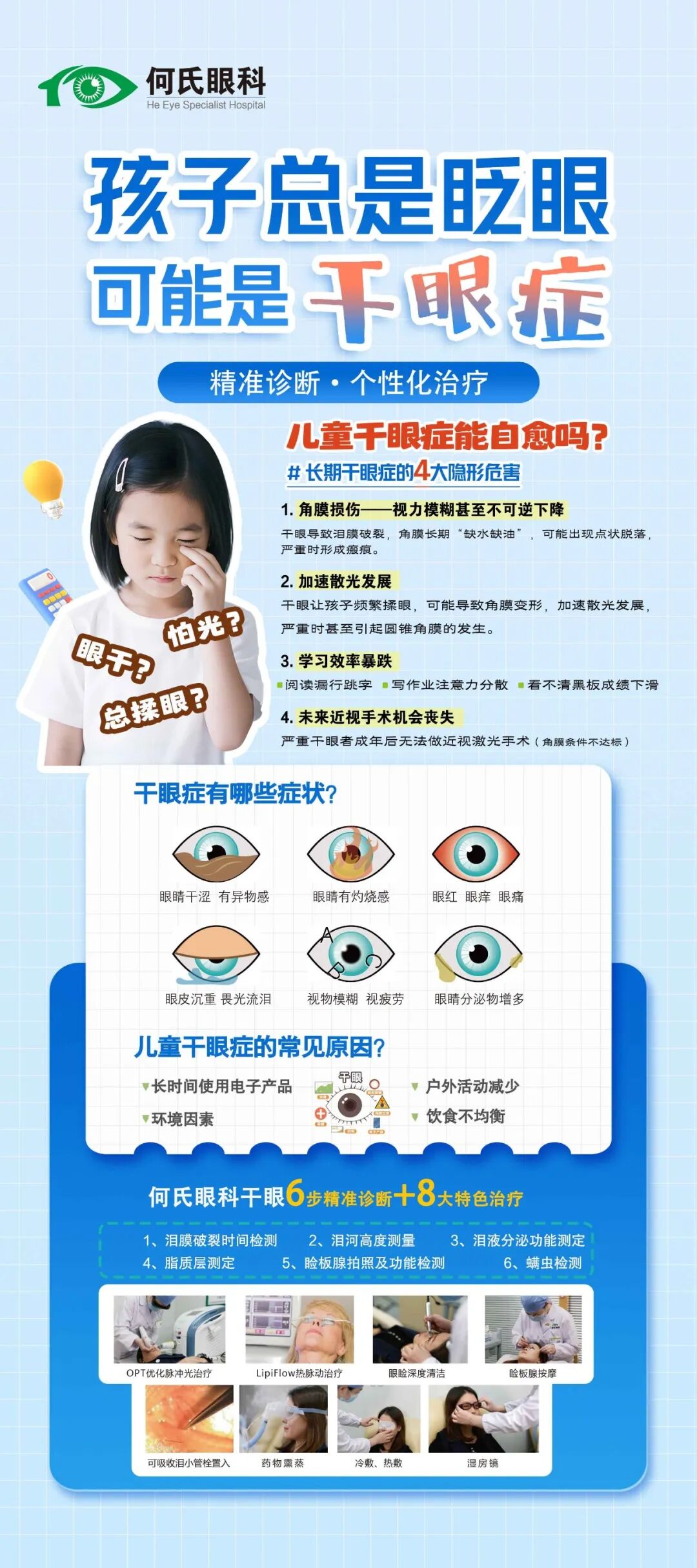 专业诊断: 带孩子去正规医院小儿眼科进行干眼相关检查(如泪膜破裂时间、泪液分泌测试等),明确诊断。