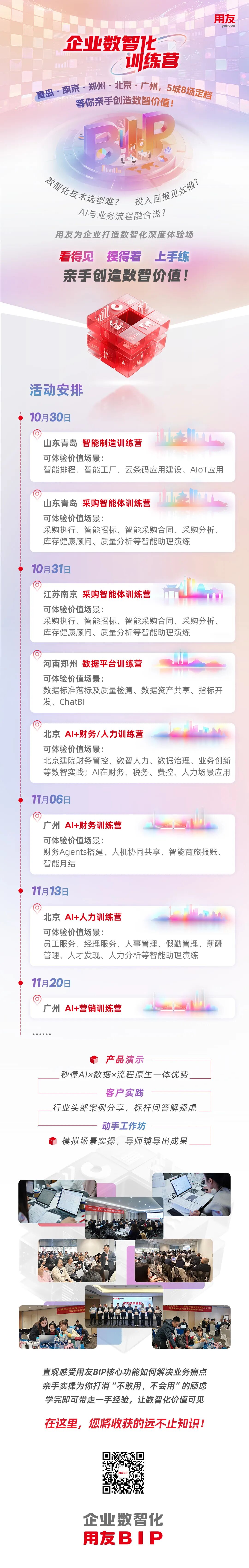 企业数智化训练营,5城8场定档,等你亲手创造数智价值!