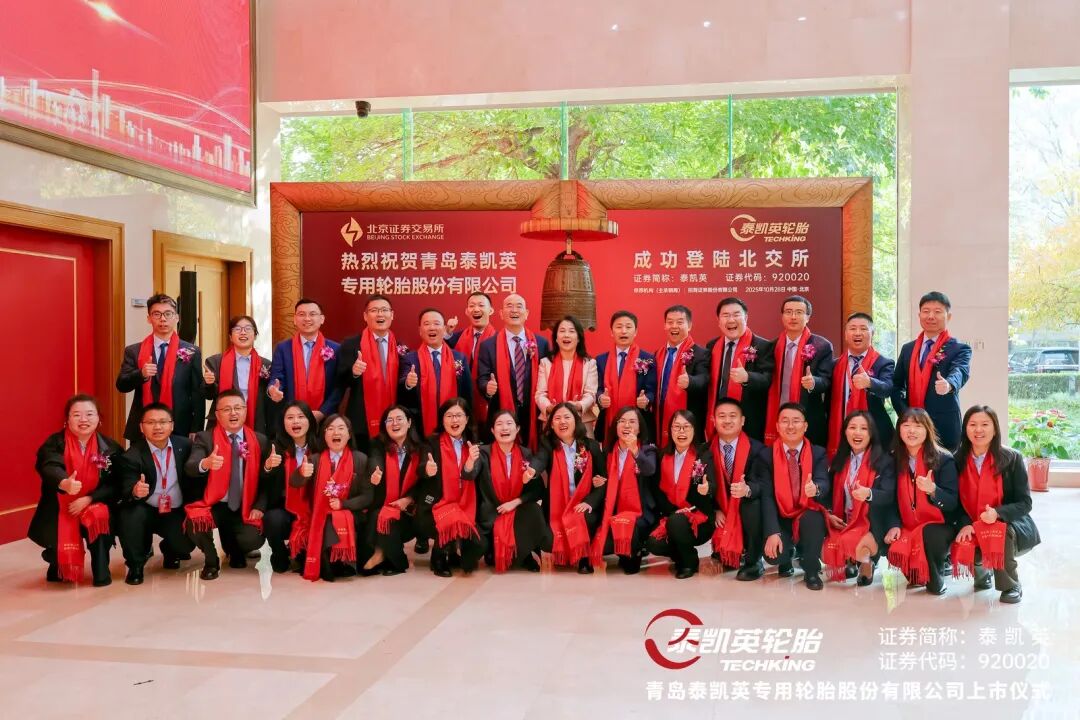 自2007年扎根矿山与建筑轮胎领域起,我们便明确:TECHKING的含义是信奉技术为王驱动公司发展的理念,成为一家通过技术驱动发展的公司。这不仅是我们名字的涵义,更是我们一切发展的出发点。我们始终坚持,泰凯英首先是一家技术公司,而我们的经营理念,是以为用户创造价值为原点,在协会的指导之下,在高校的科研支持之下,联合主机配套、代理商伙伴和生产伙伴实现共赢。实验室里为优化配方而亮至深夜的灯火,为精准采集工况数据而奔赴全球矿区的风尘仆仆,为解决客户痛点、提升设备出勤率而付出的竭尽全力……无一不见证着泰凯英人对技术创新的追求、与伙伴共赢的理念。正是这点滴的坚持,让泰凯英的场景化产品跨越山海,服务全球100多个国家和地区的客户,赢得了徐工集团、三一集团、中联重科、临工、柳工、同力、利勃海尔、杰西博、安百拓、紫金矿业、力拓集团等全球伙伴的长期信赖。我们始终坚信,技术创新是立身之本,也是通往未来的金钥匙。从深入各种恶劣工况的场景化轮胎,到前瞻性地布局电动轮胎、无人驾驶车辆轮胎,再到反复打磨迭代的泰科仕轮胎智能管理系统……我们攻克了一道道技术壁垒。正是这份对创新的执着,让我们在细分领域站稳了脚跟,也让今天的上市水到渠成。登陆北交所,对我们而言不是终点,而是资源更集中、目标更清晰的新起点。正如王传铸董事长在敲钟仪式上说的,上市后,我们将一如既往地深耕矿山建筑轮胎细分领域,将募集资金悉数用于研发,全力推进全系列场景专用轮胎产品升级、专用轮胎创新技术研发中心建设和专用轮胎智能化管理系统提升项目,以更精准地破解用户痛点,更高效地满足矿业建筑业客户需求。我们将继续以技术创新为核心动力,通过跨学科交叉集成技术研究,与矿山用户、工程机械厂家深度协同,针对不同矿山、不同设备的特点进行联合研发,为用户带来更高使用价值,携手各方一起同舟致远,共赢新程!最后,让我们向成为“全球矿山建筑轮胎领先品牌”的愿景稳步迈进,与员工一起创造幸福的生活,与合作伙伴一起创造合作增值,为投资者创造更好的回报,为社会做出更大贡献!
