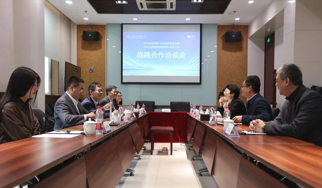 2025年10月22日上午对外经济贸易大学与中化方胜能源管理服务有限公司战略合作签约仪式在贸大行政楼成功举行,会议由对外经济贸易大学政府管理学院院长李明主持。双方围绕人才培养、产学研融合、国际化能力建设等议题展开深入交流,并正式签署战略合作协议,标志着校企合作进入新阶段。