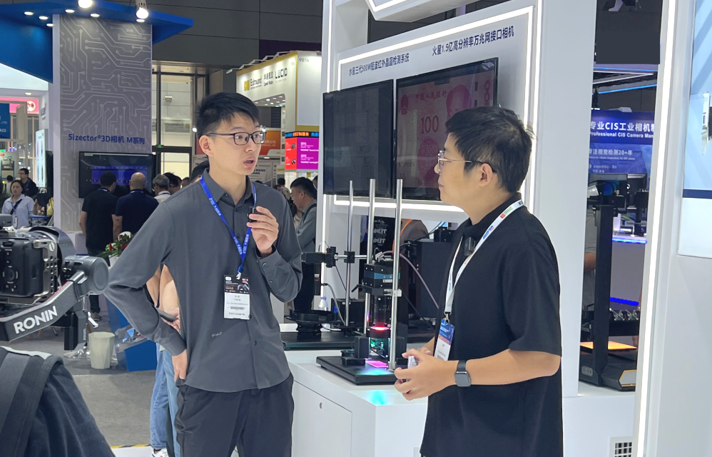 我们获得机器视觉创新产品奖的水星三代USB3.2Gen2接口的工业相机,在创新展区进行展示,吸引不少观众驻足观看。