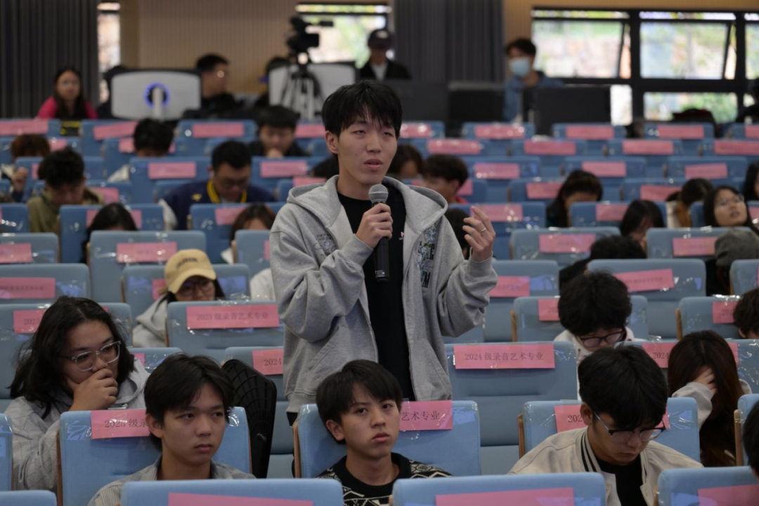 当日下午,学校举行“声动未来”主题学术讲座。来自全国各地的电影声音教育专家围绕电影声音的创作和理论,与现场师生进行互动和分享。