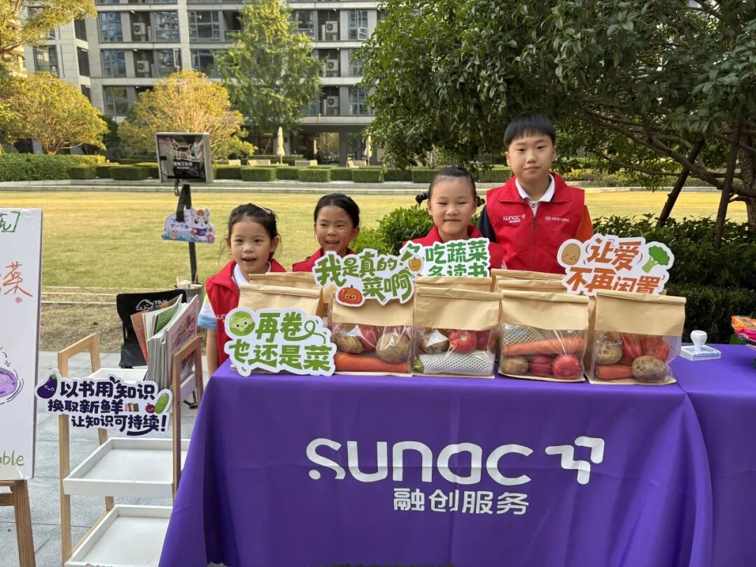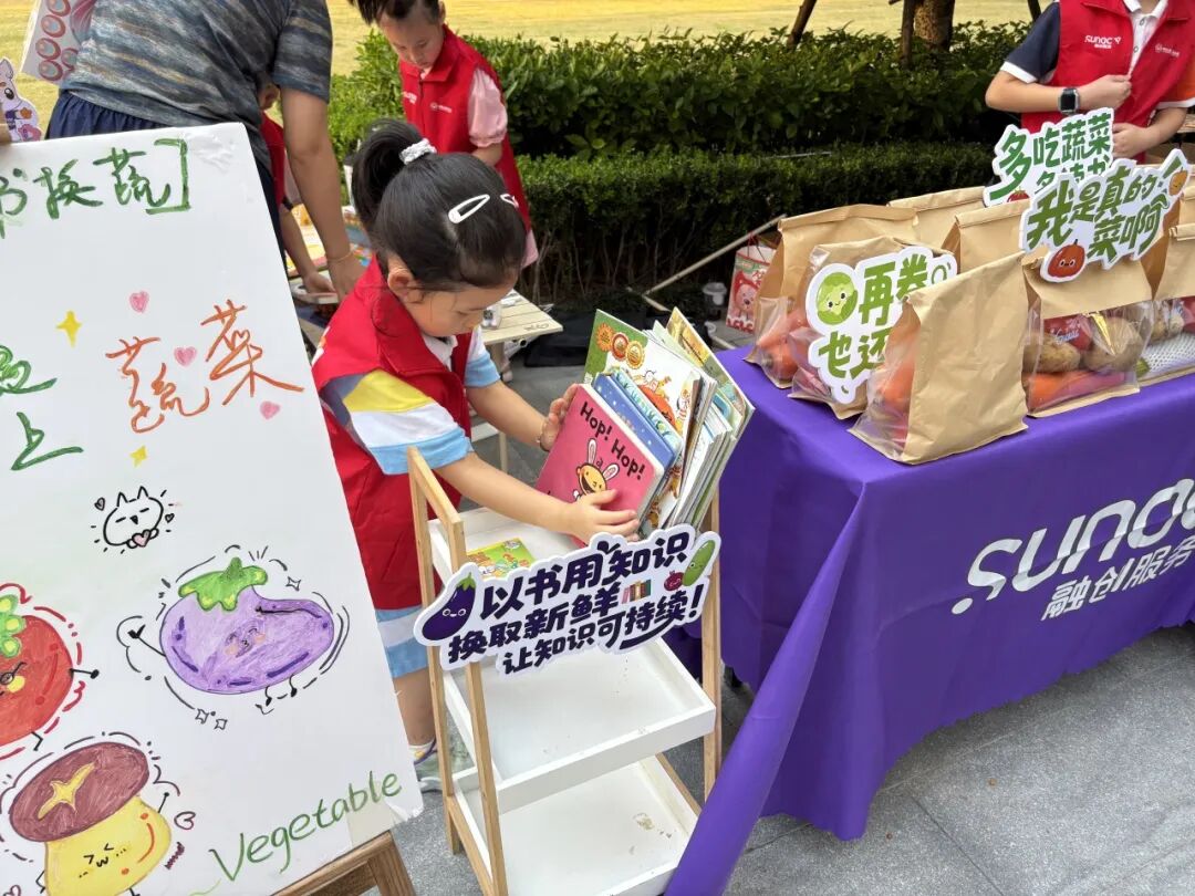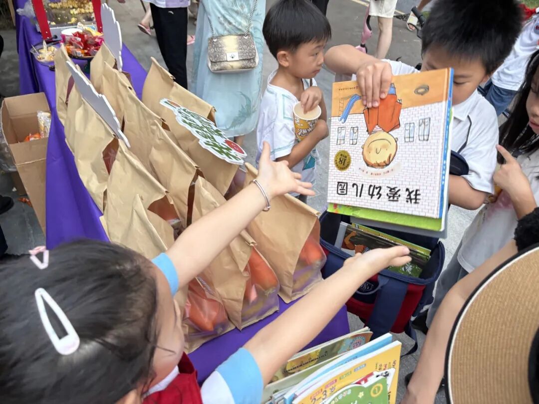 伴随着业主们的热情参与,现有的捐赠的书籍陆续开启了漂流旅程。为保证活动的持续进行并引导业主积极参与社区共建,“以书换蔬”活动从墙上搬到了现实,这次中秋节招募了换书摊位的小小店长,与小业主共建活动场景,现场孩子们带着精心挑选的绘本和名著,换回了新鲜的蔬菜,脸上洋溢着双份的喜悦。