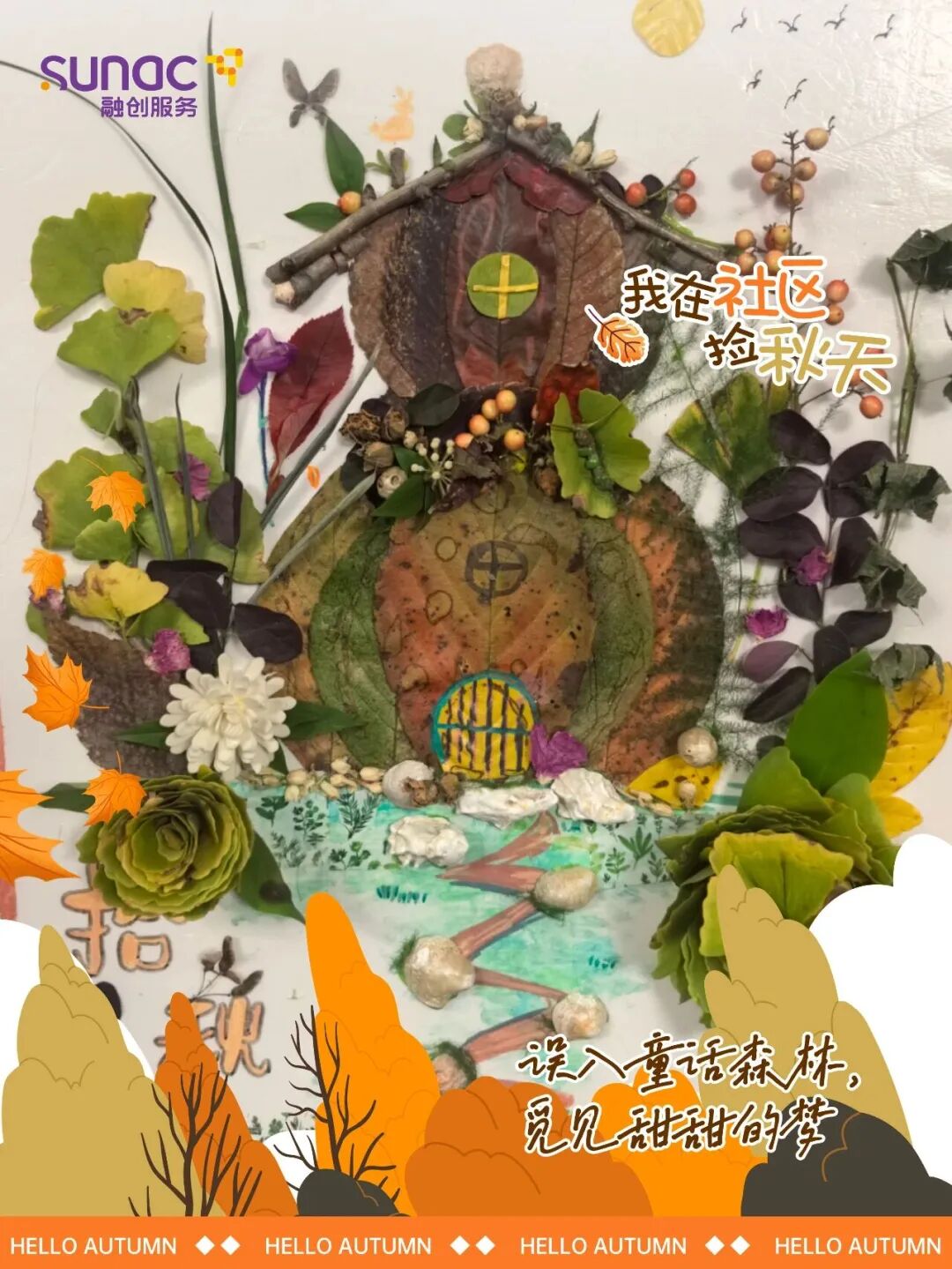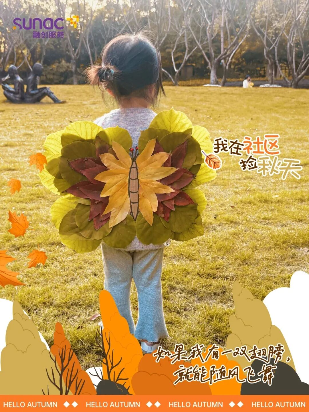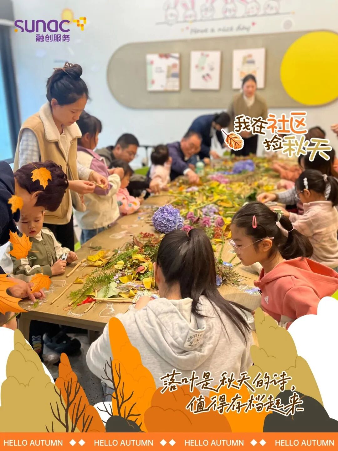 每年秋天,融创服务都会与业主家人们一同和大自然进行一场浪漫的约会——“捡秋”。大小业主们一起走进园区,收集落叶、枯枝与果实这些秋天的信物。这些大自然的馈赠,在邻里们的巧手共创下,被制作成一幅幅充满童趣的树叶画和一个个独特的自然装饰,被展示在果壳CLASS空间。这不仅仅是一次作品展,更是时代奥城家人们友爱、共创精神的生动写照。