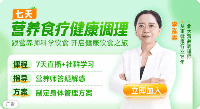 不知道怎么吃?点击下方加入7天营养食疗体验营,营养师带你一起开启健康饮食之旅↓↓↓