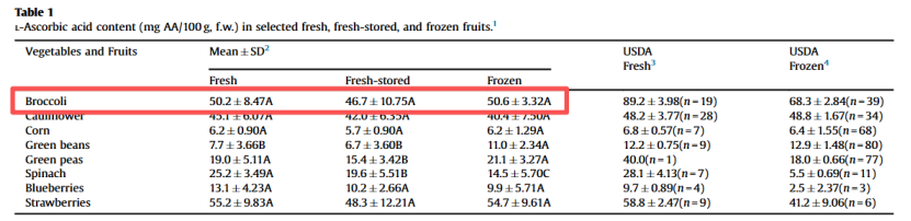 这意味着,速冻西兰花保留了与新鲜采摘时相当的维生素C水平。